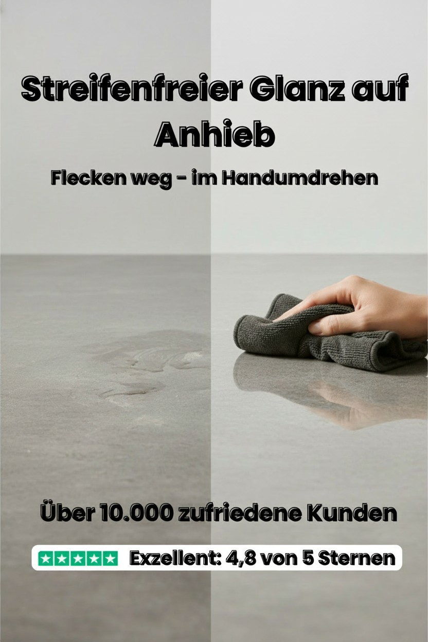"Ich bin wirklich beeindruckt! Ich war skeptisch, aber der BlitzBlank hat meine Routine komplett verändert. Mit nur einem Wisch nimmt er alles auf und hinterlässt die Oberflächen streifenfrei, makellos und glänzend – ganz ohne Aufwand."